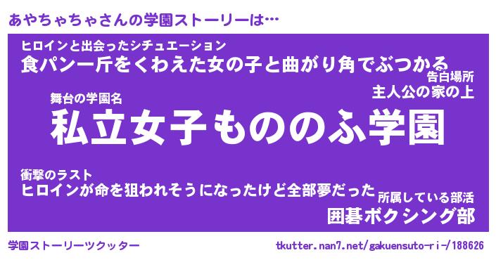 | 男性向けラノベタイトル風あだ名 | 『アヤチャチャアートオンライン』 |