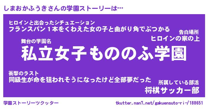 | 女子向けラノベタイトル風あだ名 | 『誰かこのしまおかふうきを説明してください! ~契約から始まるウェディング~』 |