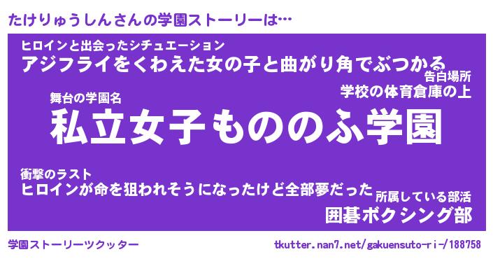 | 女子向けラノベタイトル風あだ名 | 『たけりゅうしん姫と円卓の騎士』 |