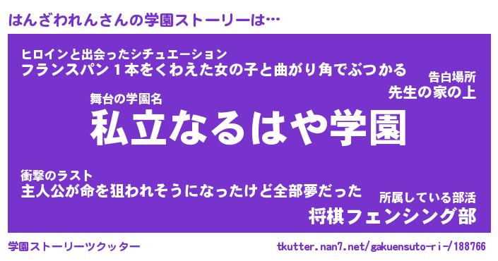 | 男性向けラノベタイトル風あだ名 | 『はんざわれんの憂鬱』 |