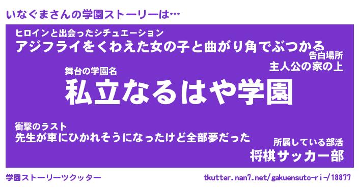 | 男性向けラノベタイトル風あだ名 | 『いなぐまの憂鬱』 |
