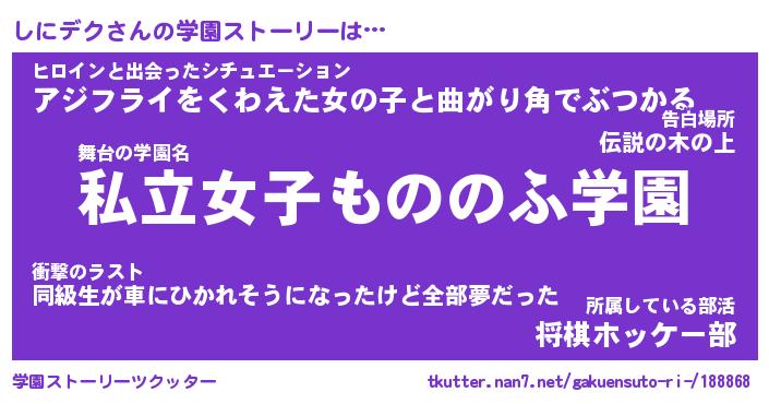 | 胡散臭い通販商品みたいなあだ名 | 『億万長者になれるブレスレット…その名も「しにデク」』 |