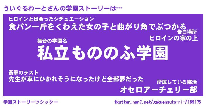 | 男性向けラノベタイトル風あだ名 | 『ういぐるわーとの憂鬱』 |