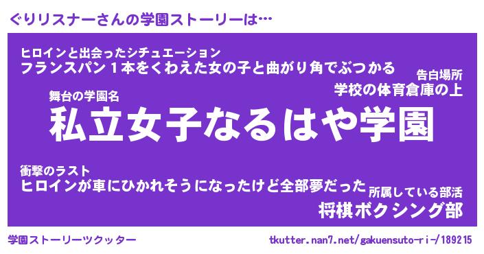 | ヘコむあだ名 | 『ぐりにゅー』『酢こんぶ』『ぐりを』 |