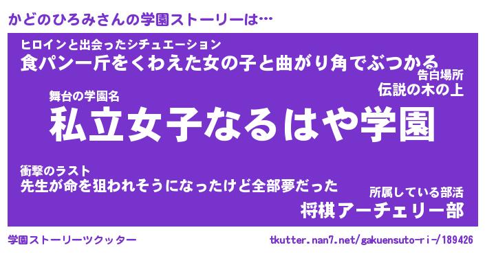 | 肩書あだ名 | 『かどのひろみ社長令嬢』 |