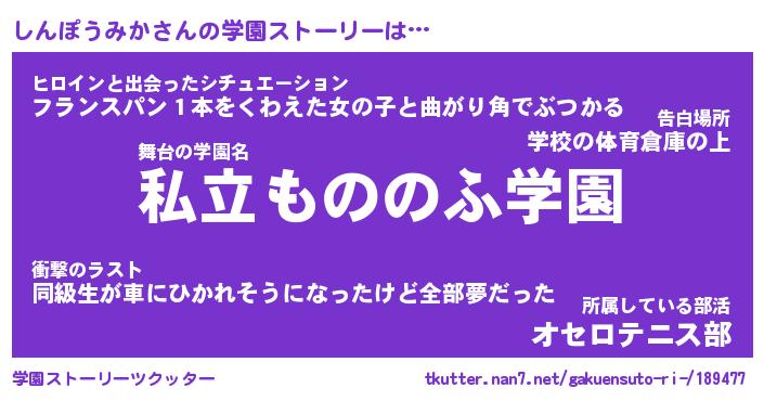 | 女子向けラノベタイトル風あだ名 | 『(仮)しんぽうみかのやんごとなき事情』 |