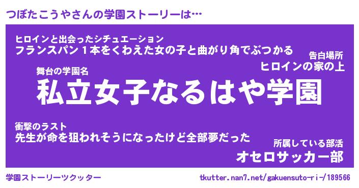 | 女子向けラノベタイトル風あだ名 | 『つぼたこうや姫と円卓の騎士』 |