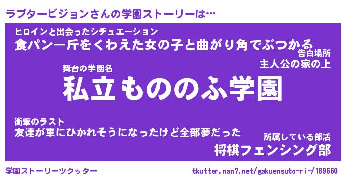 | 男性向けラノベタイトル風あだ名 | 『ラプタービジョンの憂鬱』 |