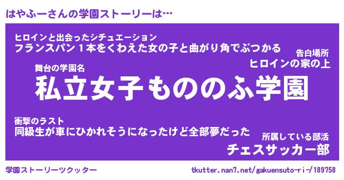 | ファンタジー風あだ名 | 『ハヤフェル』『エターナルハヤフーー』 |