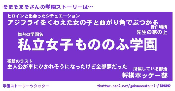 | ファンタジー風あだ名 | 『ソマフェル』『エターナルソマソマソー』 |