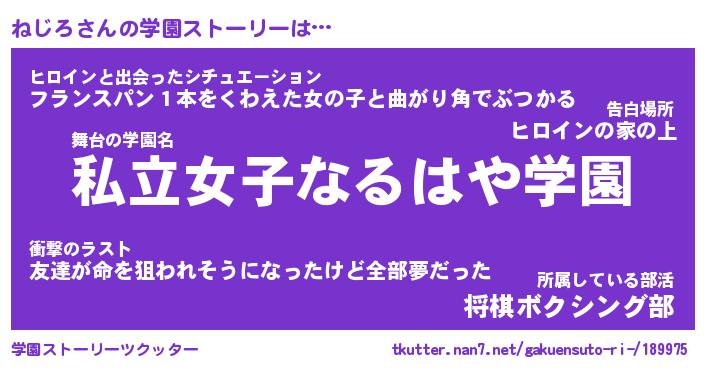 | ヘコむあだ名 | 『ねじにゅー』『なまこ酢』『ねじを』 |
