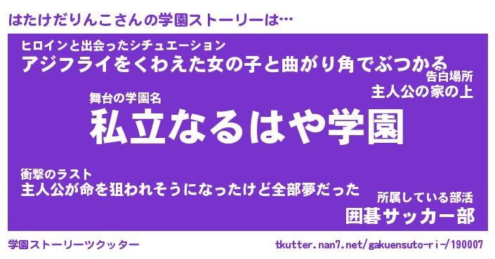 | 伝説のあだ名 | 『伝説のスナイパーはたけだりんこ』 |