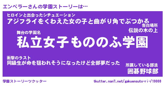 | 女子向けラノベタイトル風あだ名 | 『エンペラー姫と円卓の騎士』 |