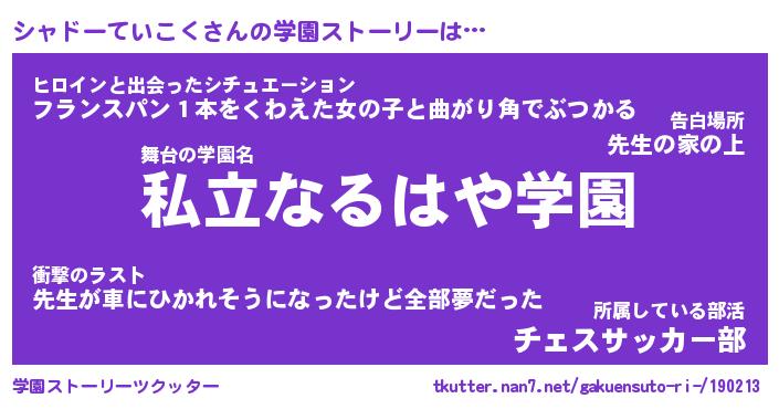 | 恥ずかしいあだ名 | 『プリティーシャドーていこく』 |