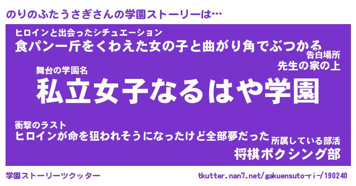 | 女子向けラノベタイトル風あだ名 | 『のりのふたうさぎ姫と円卓の騎士』 |