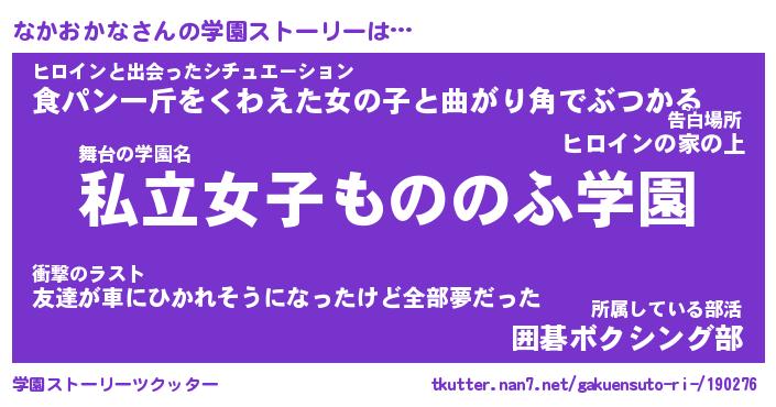 | 女子向けラノベタイトル風あだ名 | 『なかおかな姫と円卓の騎士』 |