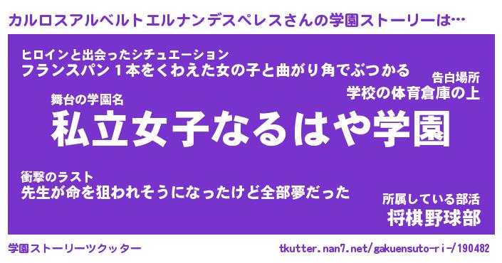 | 伝説のあだ名 | 『封印されしスナイパーカルロスアルベルトエルナンデスペレス』 |