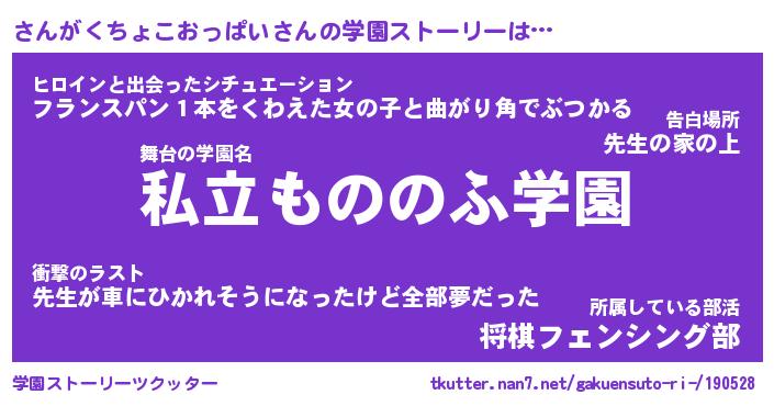 | 男性向けラノベタイトル風あだ名 | 『さんがくちょこおっぱいの憂鬱』 |
