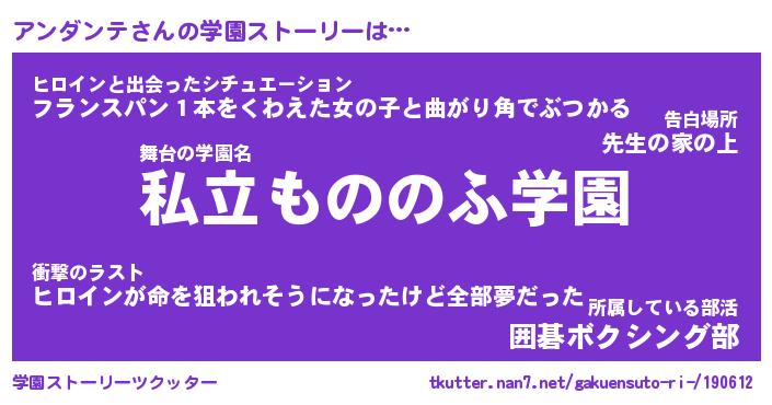 | ヒーロー風カッコイイあだ名 | 『スーパーアンダンテ』『黄金騎士アン』 |