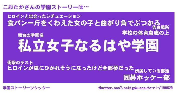 | 男性向けラノベタイトル風あだ名 | 『コオタカアートオンライン』 |