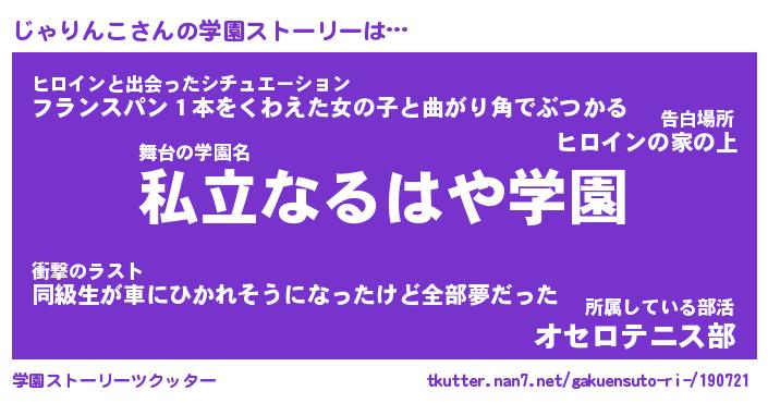 | 女子向けラノベタイトル風あだ名 | 『(仮)じゃりんこのやんごとなき事情』 |