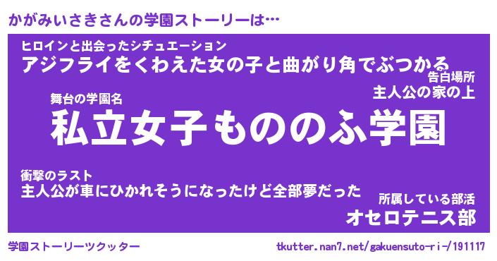 | 女子向けラノベタイトル風あだ名 | 『誰かこのかがみいさきを説明してください! ~契約から始まるウェディング~』 |