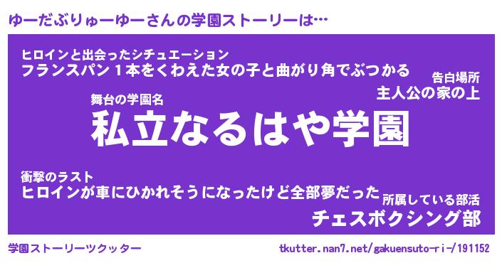 | 女子向けラノベタイトル風あだ名 | 『ゆーだぶりゅーゆー姫と円卓の騎士』 |