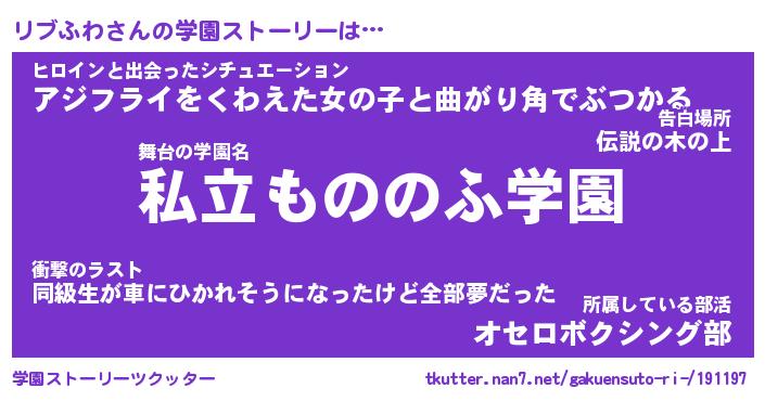 | 男性向けラノベタイトル風あだ名 | 『リブふわの憂鬱』 |