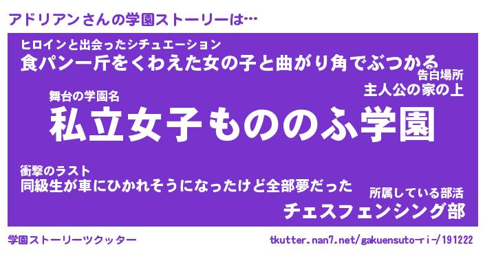 | 女子向けラノベタイトル風あだ名 | 『アドリアン姫と円卓の騎士』 |