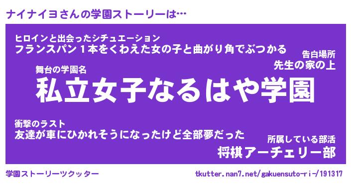 | ファンタジー風あだ名 | 『ナイフェル』『エターナルナイナイヨー』 |