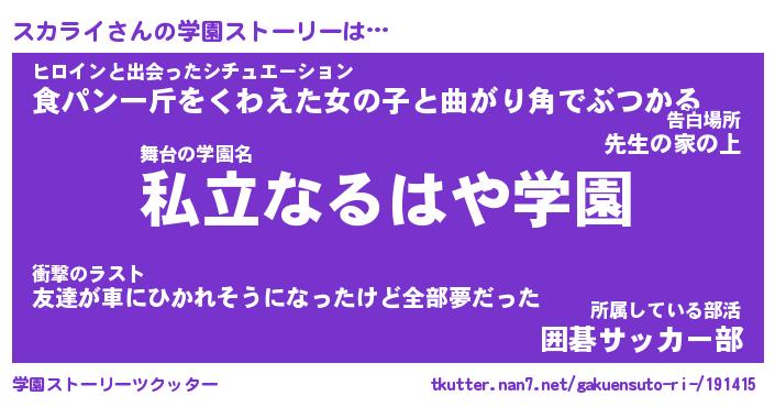 | 男性向けラノベタイトル風あだ名 | 『スカライの憂鬱』 |
