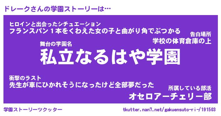 | 男性向けラノベタイトル風あだ名 | 『ドレークの憂鬱』 |