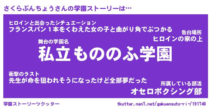 | 男性向けラノベタイトル風あだ名 | 『さくらぶんちょうの憂鬱』 |