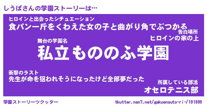 | 男性向けラノベタイトル風あだ名 | 『しうばの憂鬱』 |