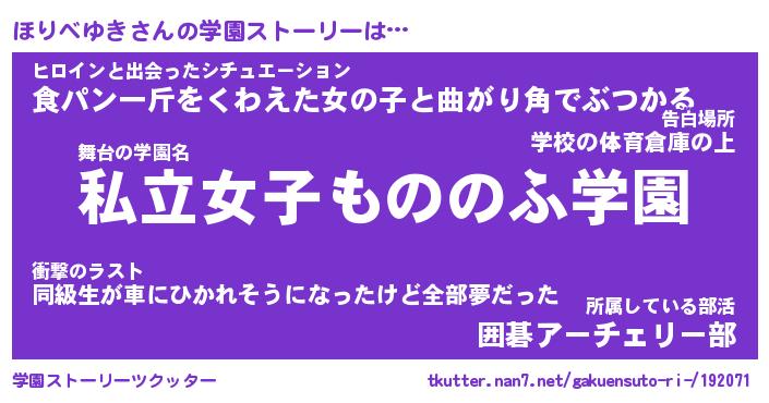 | 女子向けラノベタイトル風あだ名 | 『誰かこのほりべゆきを説明してください! ~契約から始まるウェディング~』 |