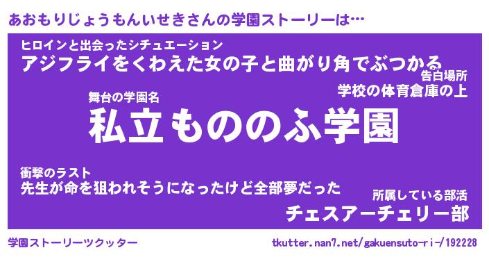 | 男性向けラノベタイトル風あだ名 | 『あおもりじょうもんいせきの憂鬱』 |