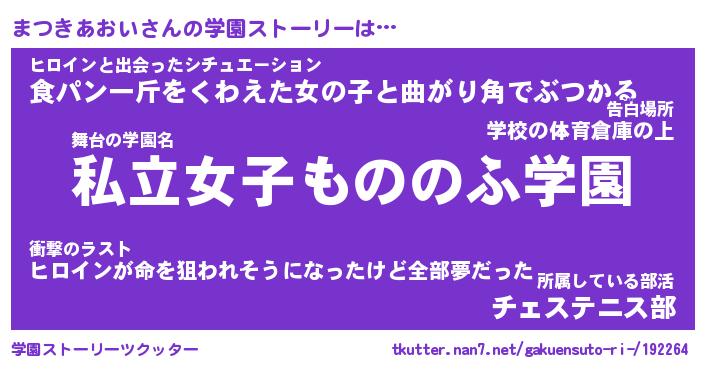 | ヒーロー風カッコイイあだ名 | 『スーパーマツキアオイ』『魔戒騎士マツ』 |