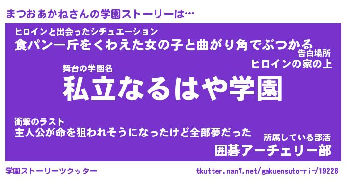 | 女子向けラノベタイトル風あだ名 | 『まつおあかね姫と円卓の騎士』 |