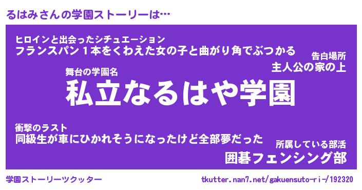 | 男性向けラノベタイトル風あだ名 | 『るはみの憂鬱』 |