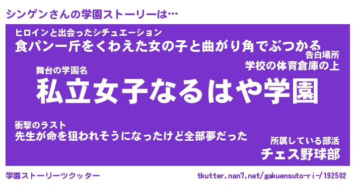 | 意味不明あだ名 | 『ペロリンシンゲン』『永久保存シンゲン』 |