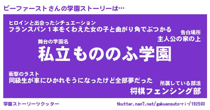 | 男性向けラノベタイトル風あだ名 | 『ビーファーストの憂鬱』 |