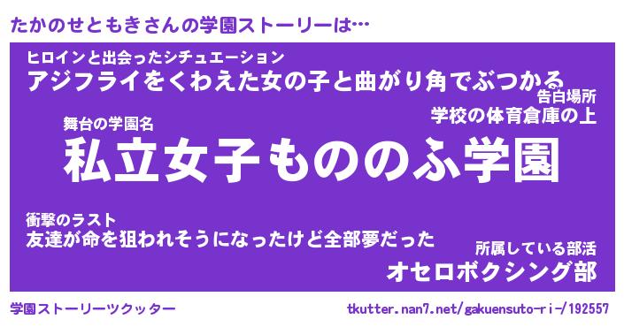 | 女子向けラノベタイトル風あだ名 | 『たかのせともき姫と円卓の騎士』 |