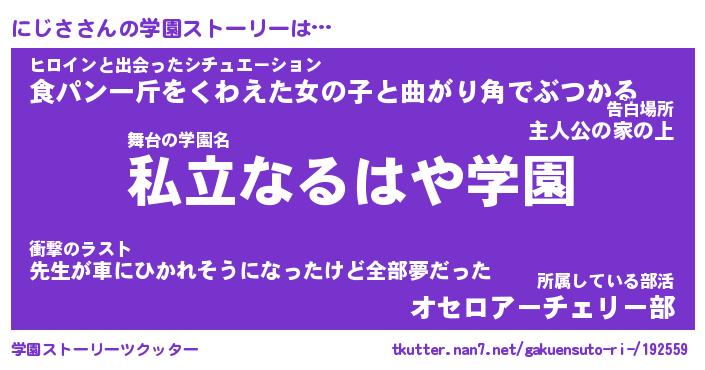 | ファンタジー風あだ名 | 『ニジフェル』『エターナルニジサー』 |