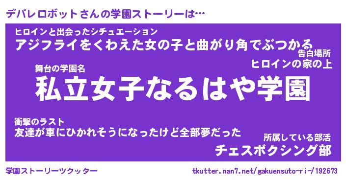 | 男性向けラノベタイトル風あだ名 | 『デパレロボットアートオンライン』 |
