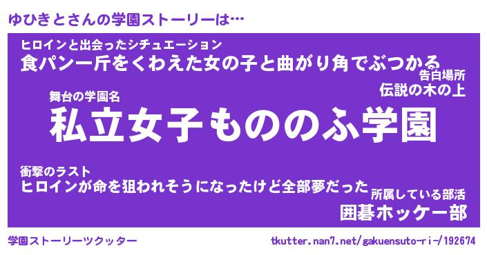 | ファンタジー風あだ名 | 『ユヒフェル』『エターナルユヒキトー』 |
