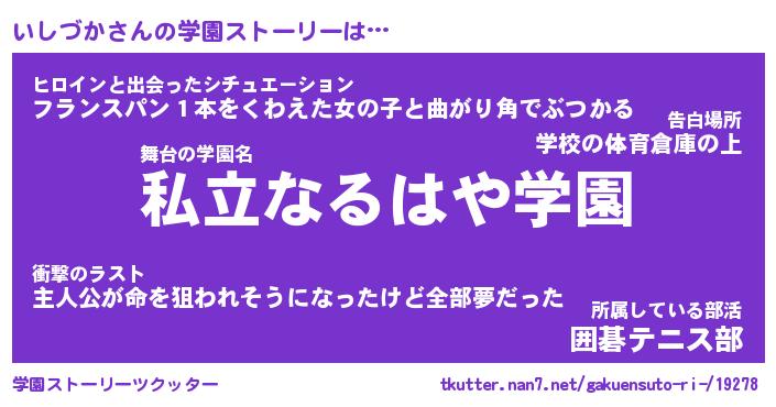 | 女子向けラノベタイトル風あだ名 | 『(仮)いしづかのやんごとなき事情』 |