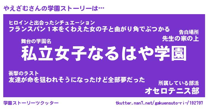 | 意味不明あだ名 | 『ペロリンやえざむ』『永久保存やえざむ』 |