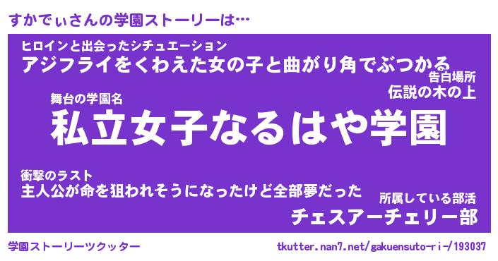 | 女子向けラノベタイトル風あだ名 | 『すかでぃ姫と円卓の騎士』 |