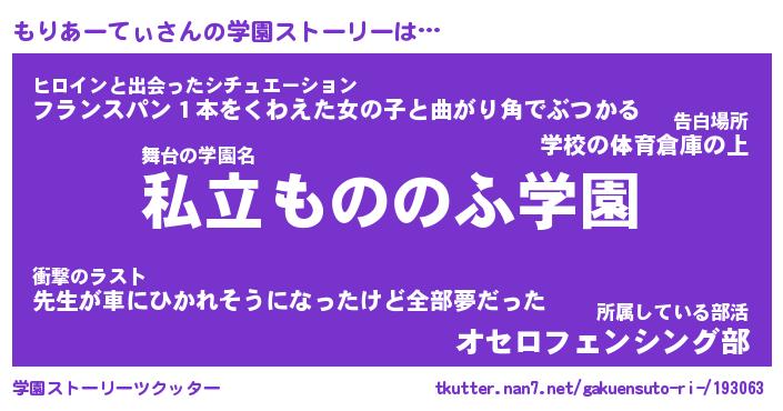 | 男性向けラノベタイトル風あだ名 | 『もりあーてぃの憂鬱』 |