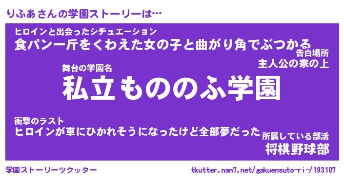 | 男性向けラノベタイトル風あだ名 | 『りふあの憂鬱』 |